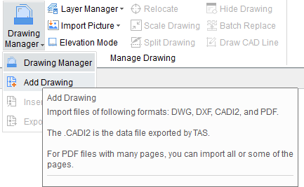 1. Click Add Drawing, and then select the drawing you want to import.
